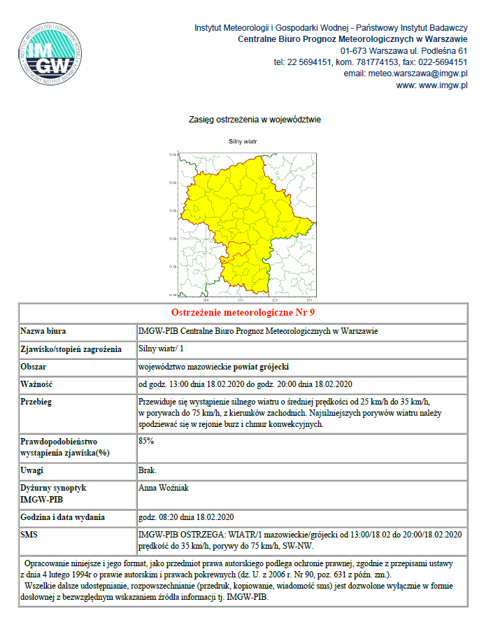 Ostrzeżenie meteorologiczne - silny wiatr