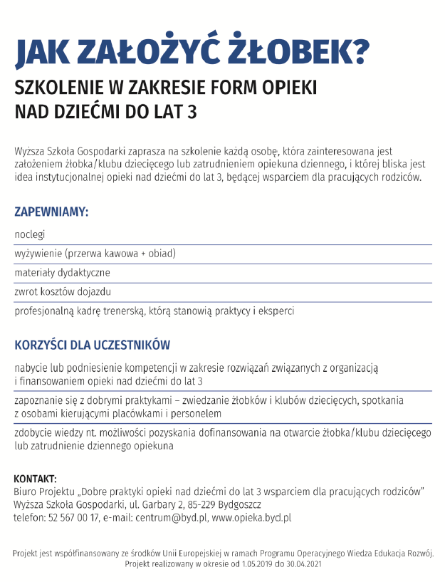 Zaproszenie do wzięcia udziału w szkoleniu nt. Jak założyć żłobek?