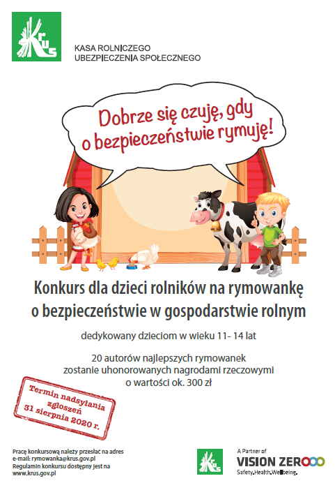 Konkurs dla dzieci rolników na rymowankę o bezpieczeństwie w gospodarstwie rolnym