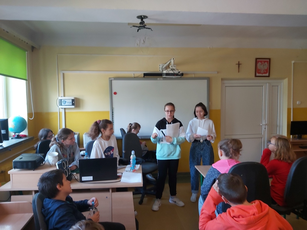 z obecnych klas VI i VII prowadziła prezentacje dla swoich kolegów i koleżanek z innych klas. Stoiska z prezentacją efektów zajęć w ramach projektu były przygotowane w oddzielnych salach z zachowaniem reżimu sanitarnego. Uczniowie wykazali się dużym zaangażowaniem, kreatywnością i aktywnością. Przygotowali ciekawe plakaty, prezentacje multimedialne oraz zadania. Po prezentacjach odbył się internetowy quiz “Kahoot” oraz pokaz gier planszowych przygotowanych przez uczniów. Najbardziej aktywni uczniowie oraz dzieci biorące udział w konkursie plastycznym zostali nagrodzeni pamiątkowymi statuetkami oraz książkami.